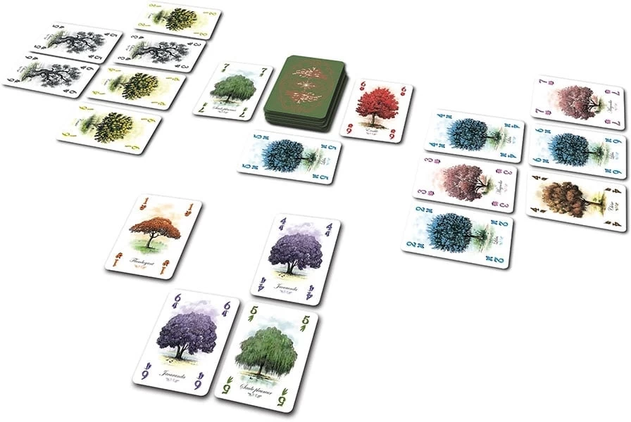 Il n’est nul lieu où la beauté de la nature est plus évidente qu’au sein des couleurs resplendissantes d’un arboretum. Dans Arboretum, vous créez des allées soigneusement planifiées afin que vos visiteurs s’y promènent en contemplant les explosions colorées des bourgeons et des feuilles. Le joyeux cerisier en fleurs, le cornouiller odorant, le puissant chêne… tous ont leur place dans ce havre de paix. Mais ne vous y trompez pas : malgré ce cadre paisible, il s’agit bel et bien d’un jeu compétitif. Vous devrez décider quelles cartes planter dans votre arboretum, et quelles cartes conserver en main, puisque seul le plus expert des conservateurs obtiendra les hommages des amoureux de la nature.