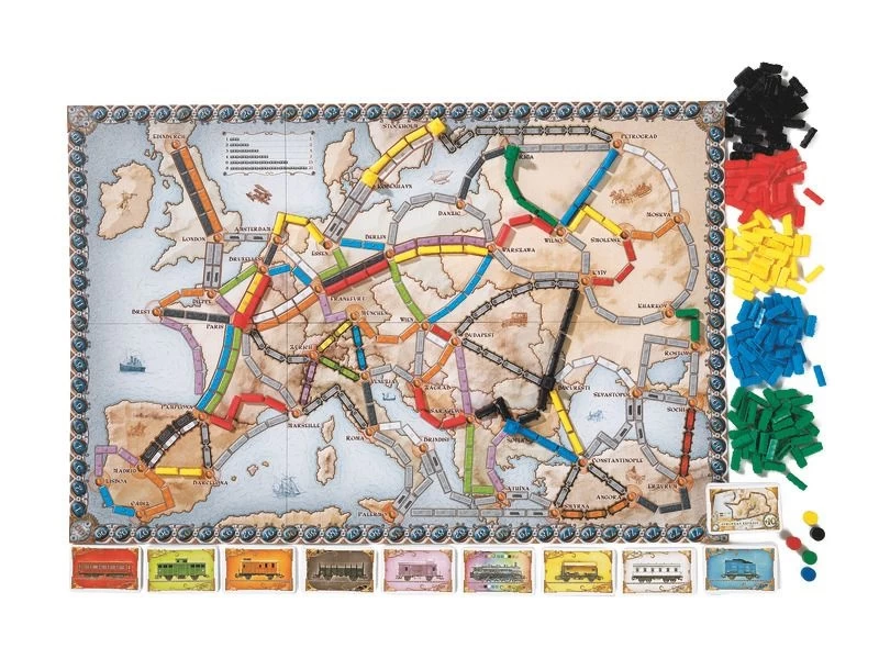 Les Aventuriers du Rail en Europe vous emmènent à la découverte de l’Europe des années 1900. Sauterez-vous à bord du premier train prêt à s’enfoncer dans les tunnels des Carpates ? Embarquerez-vous plutôt à bord d’un ferry sur les rives de la Mer Noire ? Ou préférerez-vous tout simplement bâtir la prochaine gare d’une des capitales de l’Europe ? Choisissez jusdicieusement, car de ces choix dépendra votre réputation de Baron du Rail !