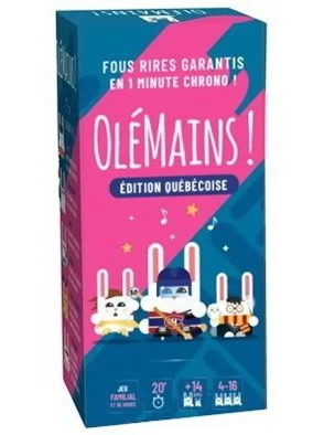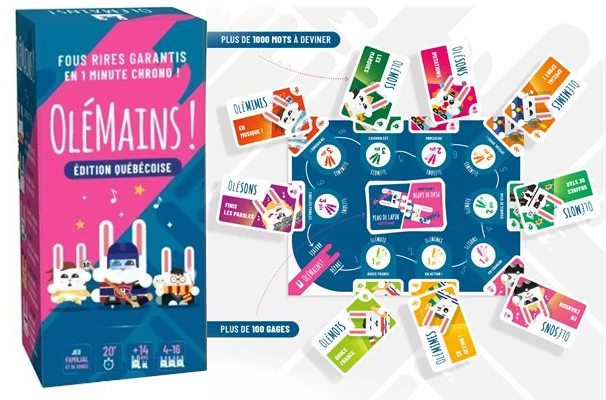 Olémains est un jeu super rapide – les rondes se jouent en 1 minute top chrono – où il faut deviner le plus de mots avant la fin du temps donné. Le jeu inclut plusieurs thèmes allant de sympathiques à plus corsés, ainsi que des cartes Gage, qui ajouteront un défi supplémentaire comme « deviner en dansant la macarena » ou « deviner allongé par terre avec les mains dans le dos ». Un jeu à jouer autant en famille qu’entre amis!