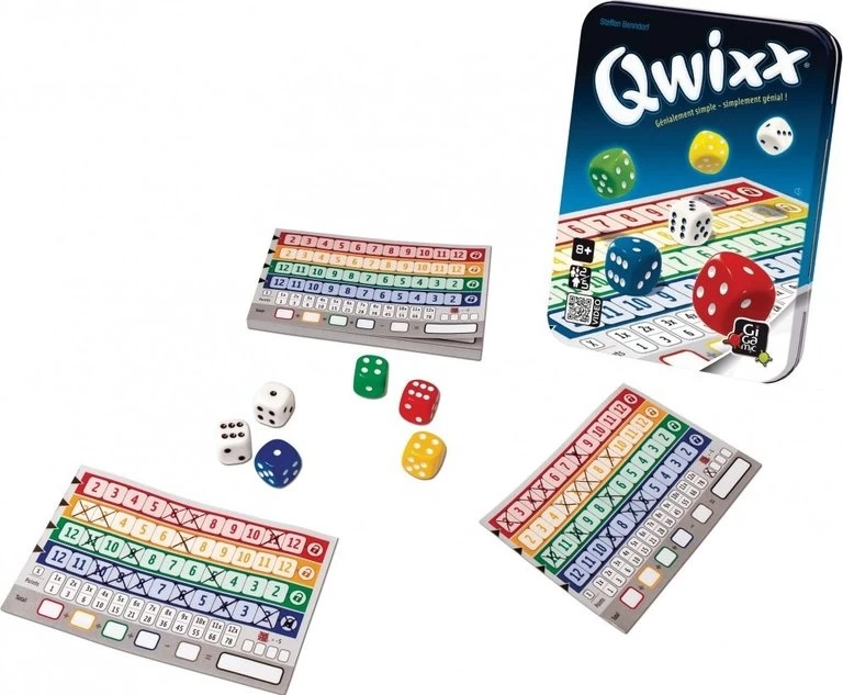 Avec Qwixx, impossible de s’ennuyer : à son tour, chaque joueur lance les dés et tout le monde peut utiliser le résultat pour cocher un chiffre d’une de ses quatre rangées. Plus vous cochez de cases, plus vous marquerez de points. Mais attention, les chiffres sont classés dans un certain ordre et une fois que vous en avez passé impossible de revenir en arrière. Laissez-vous emporter par la simplicité de ce jeu de dés palpitant !