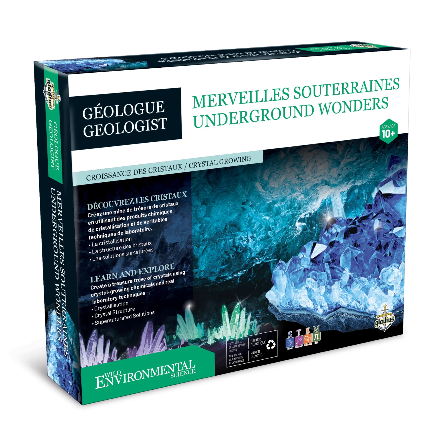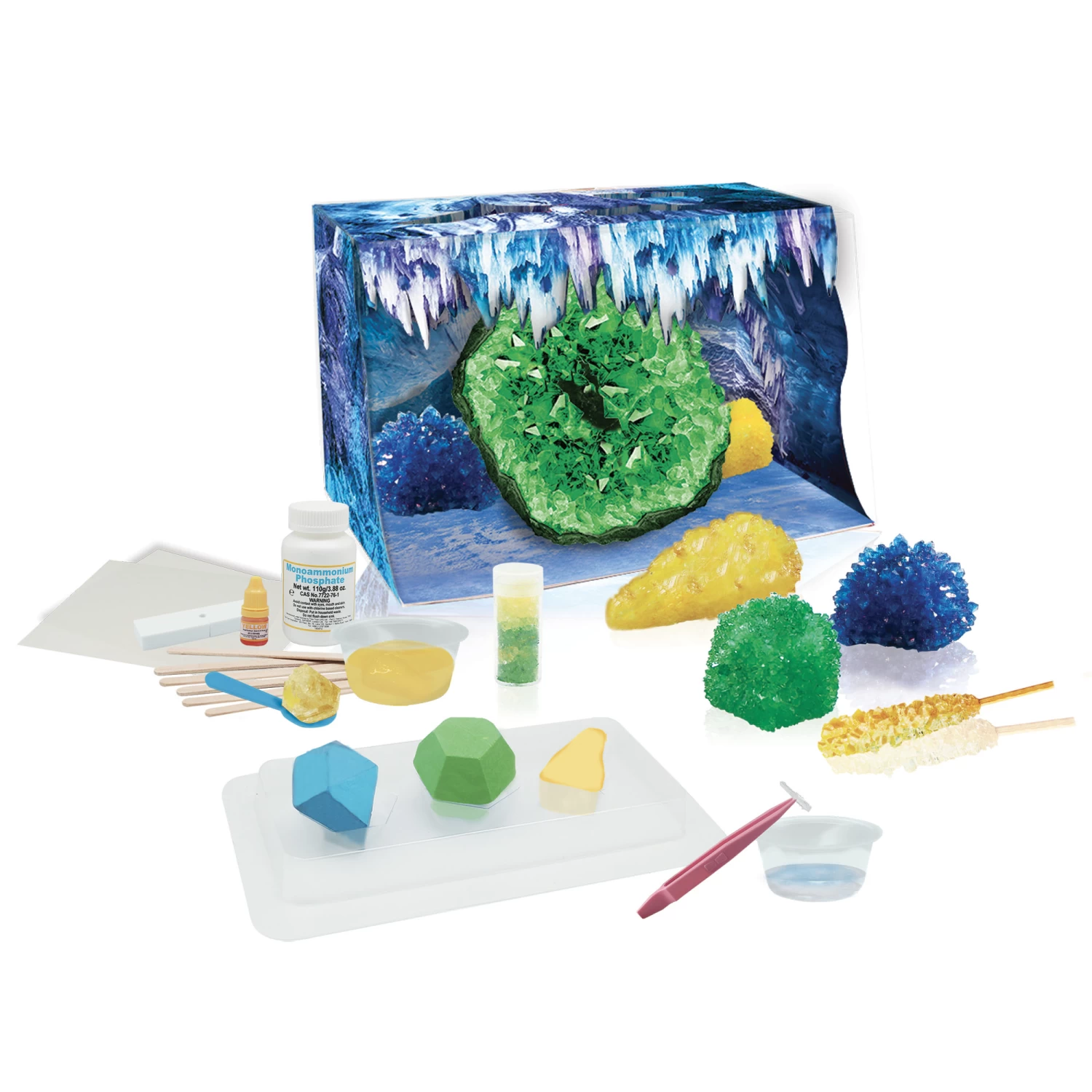 Vous découvrirez des formations rocheuses bizarres, des géodes scintillantes et vous créerez une grotte pleine de cristaux. Faites pousser des cristaux étincelants sur des formes en plâtre, fabriquez vos propres géodes scintillantes et créez une colonne de cristal. Essayez de faire pousser un cristal de taille géante et suivez les étapes pour découvrir des cristaux dans votre propre cuisine. Conservez vos créations en sécurité dans un présentoir en forme de grotte à stalactites.