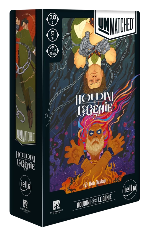 N’importe qui. N’importe où. Unmatched, ce sont des duels tactiques rapides, féroces et asymétriques, champion contre champion. Choisissez votre héros, déterminez un champ de bataille, puis utilisez votre deck et vos capacités spéciales pour l’emporter. La nouvelle extension d’Unmatched vous permet d’incarner Houdini et le Génie. Chaque héros de cette extension possède des cartes octroyant un Tour Boosté. Cela permet au combattant d’effectuer deux attaques lors d’une seule et même action Attaque. Jouable de façon indépendante ou bien combiné avec d’autres boîtes d’Unmatched pour des parties jusqu’à 4 joueurs!