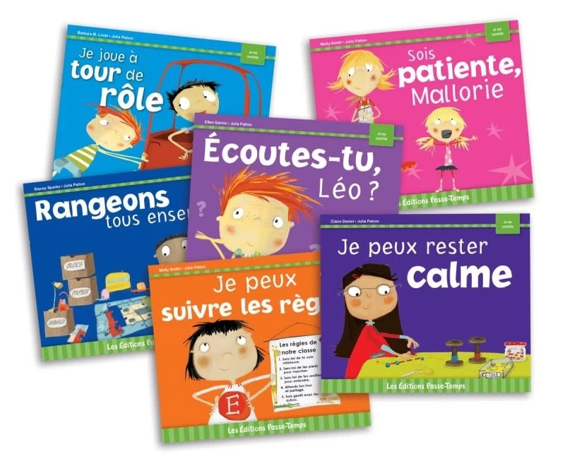 Les livres de l’ensemble Je me contrôle abordent le contrôle de soi et les manières de réagir à des situations permettant ainsi de développer et d’acquérir un comportement adéquat.