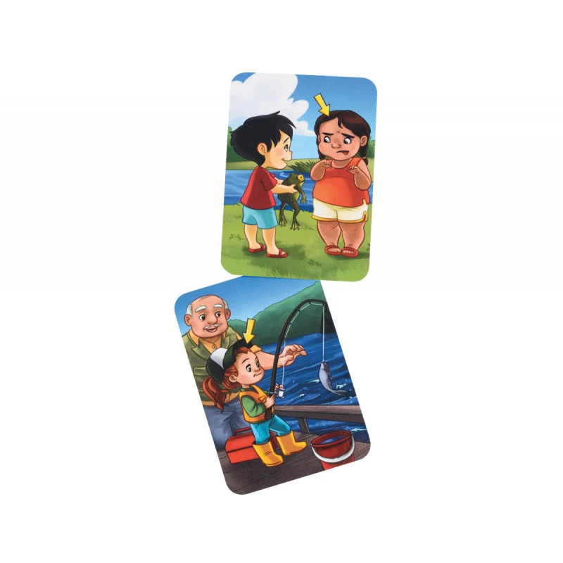 Tu dois montrer aux extraterrestres comment comprendre les émotions, car ils ne savent pas ce que c’est. Aide-les à quitter la planète Padémo pour se rendre sur la Terre et y vivre leur première émotion ! Avance en lançant le dé, prends des cartes et devine les émotions ressenties par les personnages illustrés.