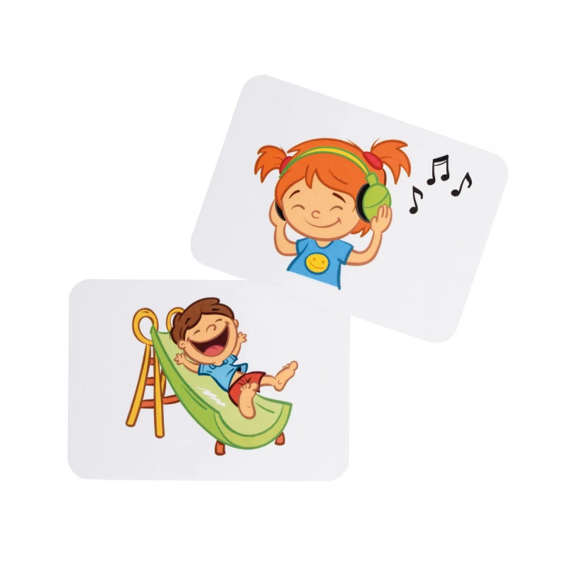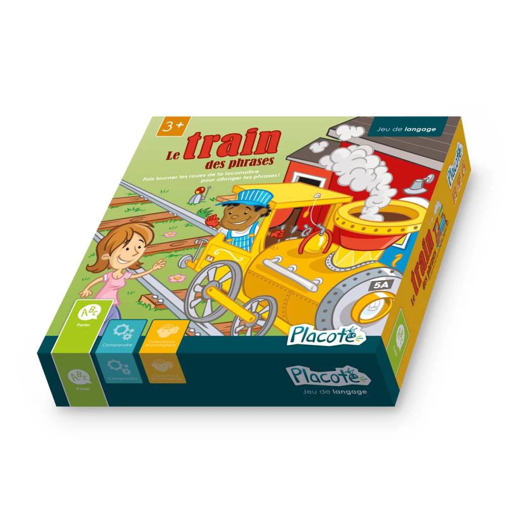 Le train de phrases est conçu pour aider les enfants de 3 ans à 5 ans à faire des phrases plus longues. Les roulettes de lieux et de temps permettent aux enfants d’ajouter un complément aux phrases illustrées sur les cartes-images. Les phrases ainsi obtenues sont parfois réalistes, parfois farfelues, ce qui ajoute un aspect amusant au jeu.